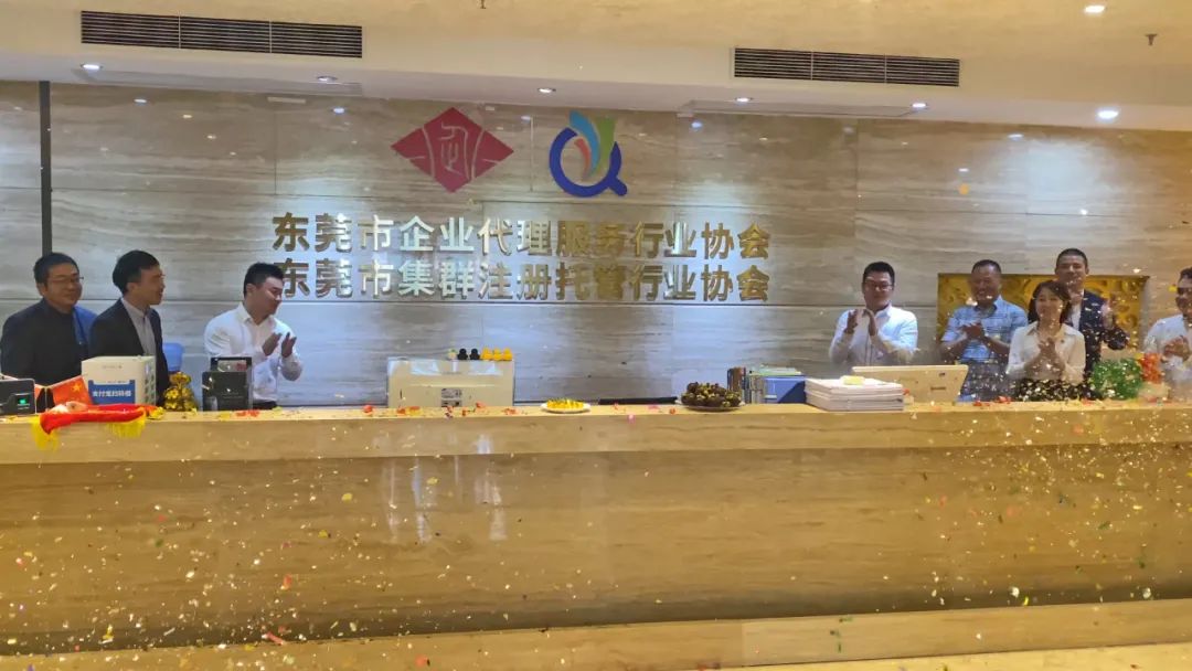 2023年4月26日,东莞市企业代理服务行业协会和东莞市集群注册托管行业协会在东莞市南城街道建设路16号南城科技大厦举行协会乔迁庆典。
